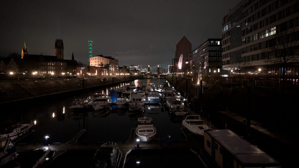 Duisburger Yachthafen bei Nacht